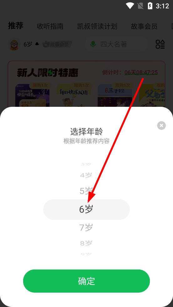 3、在彈出的選擇年齡窗口中,選擇想要設(shè)置的年齡,然后點擊確定即可完成年齡切換。