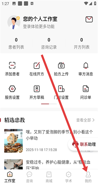 1、打開藥匣子App的工作室頁面,點擊底部的我的選項。
