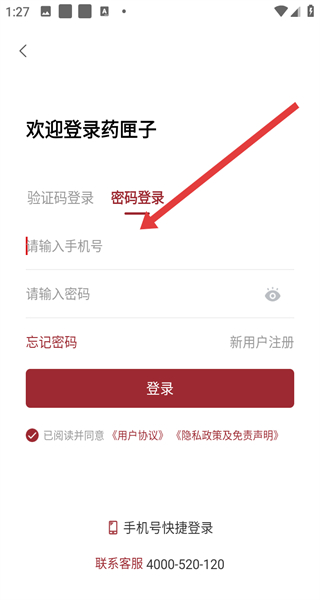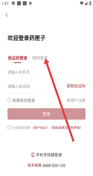3、在登錄界面,點擊密碼登錄選項,進入密碼登錄界面。