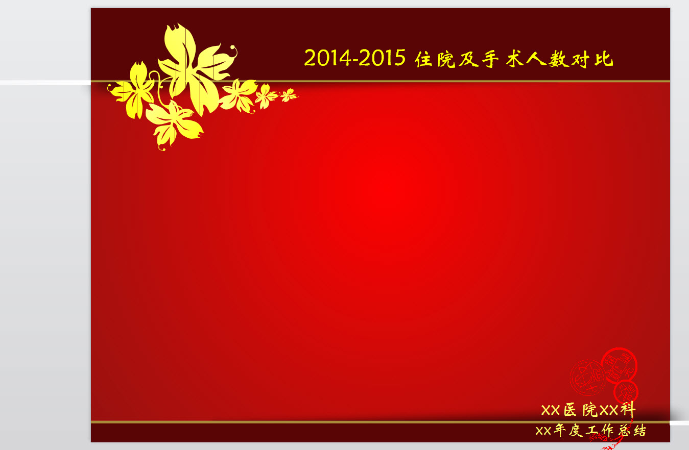 醫(yī)院年度工作總結(jié)ppt模板紅色大氣版,紅色大氣風(fēng)格,適用于各醫(yī)院及各科室2015年度工作總結(jié)。頁面背景非常的簡潔但是又非常的引人注目,感興趣的朋友可以來綠色資源網(wǎng)下載體驗!