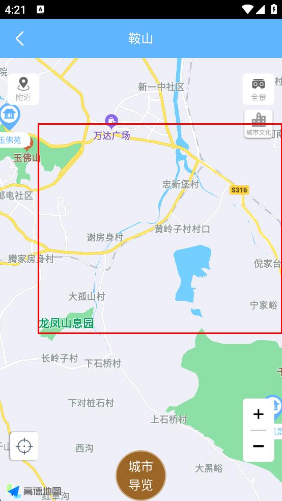 4、進入鞍山相關(guān)頁面后,即可查看鞍山的地圖,地圖上會顯示萬達廣場、玉佛山等地點及周邊區(qū)域分布情況。
