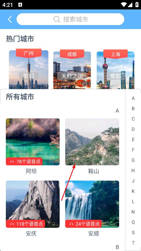 3、在城市選擇頁面,瀏覽所有城市列表,找到“鞍山”并點擊,進入鞍山相關(guān)頁面。