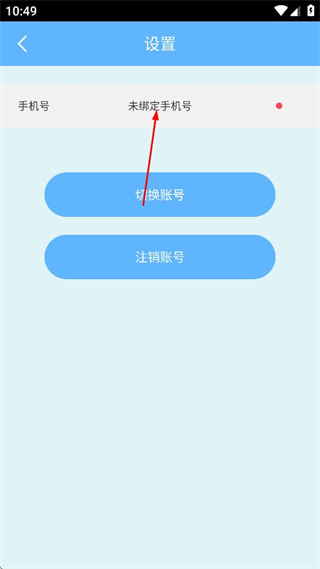 2、點擊設置圖標進入設置頁面,找到未綁定手機號選項,點擊該選項進入綁定頁面。