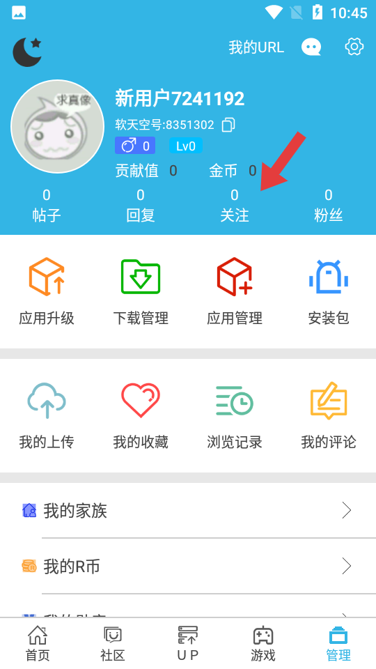 1、進(jìn)入軟天空管理的頁面,需要點擊關(guān)注的選項,進(jìn)入關(guān)注列表的界面。