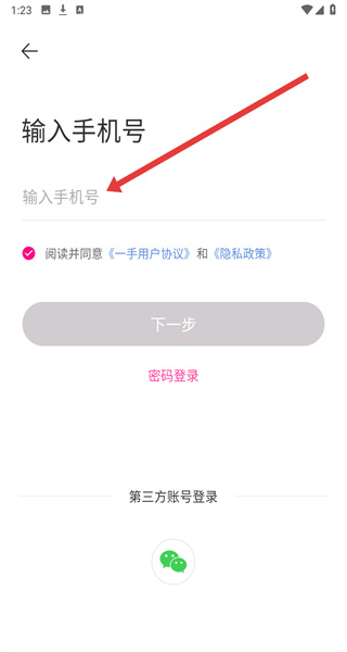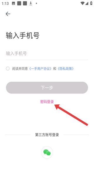 2、登錄選擇界面點擊“使用其他方式登錄”,進(jìn)入手機(jī)號輸入頁面。