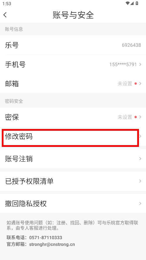 4、進入賬號與安全界面后,點擊修改密碼選項,按照提示完成密碼修改操作。