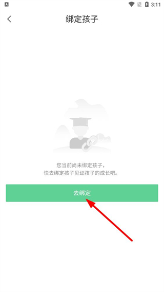 2、在綁定孩子頁面,找到去綁定按鈕并點擊,跳轉至孩子賬號的信息填寫界面。