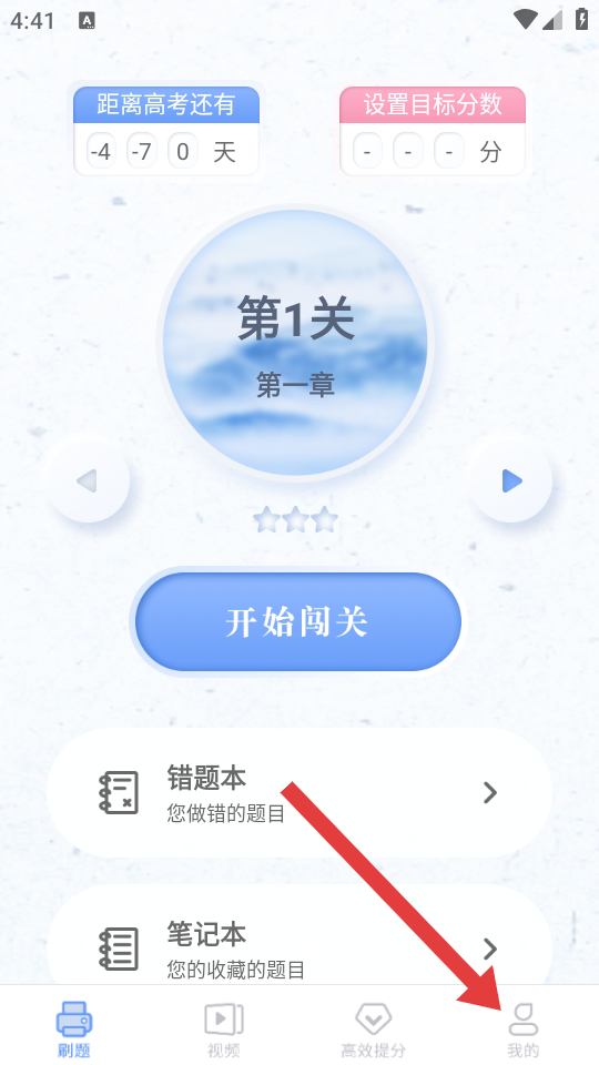 1、在高中語(yǔ)文APP首頁(yè)點(diǎn)擊我的按鈕,進(jìn)入個(gè)人功能的頁(yè)面。