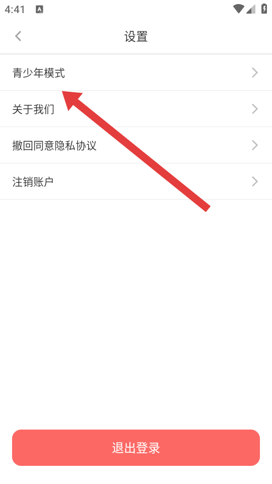 3、在設(shè)置的界面需要點(diǎn)擊青少年模式,進(jìn)入模式設(shè)置的頁(yè)面。