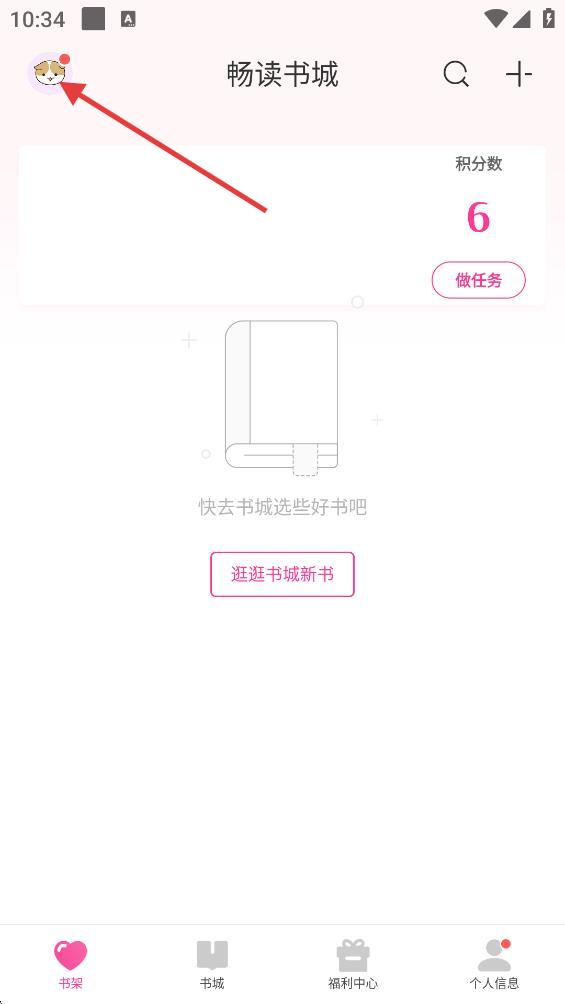 1、打開暢讀書城APP,點擊左上角的頭像圖標(biāo),進入個人信息相關(guān)頁面。