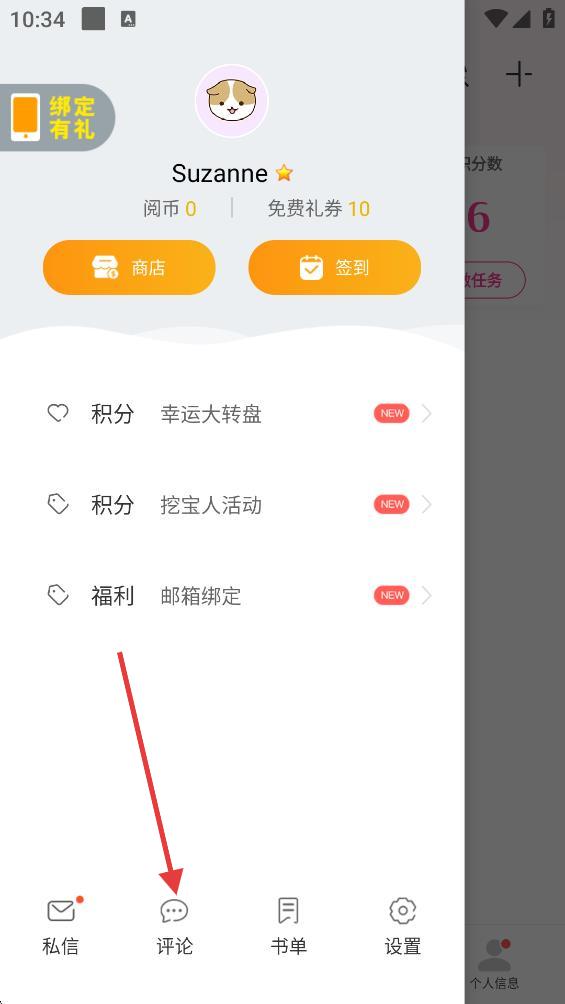 2、在個人信息頁面中,找到并點擊評論按鈕,進入評論查看界面。