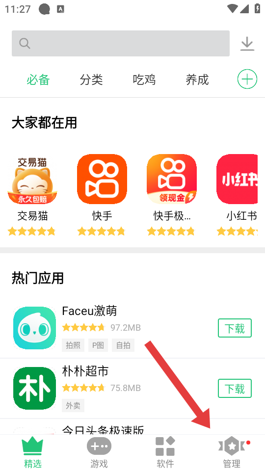 1、在歷趣市場的首頁,點(diǎn)擊右下角管理選項(xiàng),進(jìn)入管理界面。