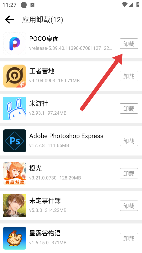 3、在應(yīng)用卸載列表中,找到要卸載的應(yīng)用,點(diǎn)擊右側(cè)的卸載按鈕。