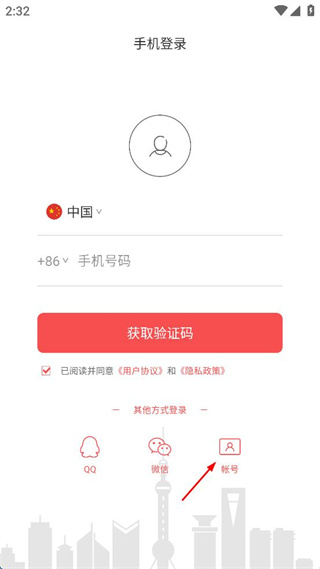 1、打開軟件手機(jī)登錄頁(yè)面,點(diǎn)擊賬號(hào)登錄選項(xiàng),進(jìn)入賬號(hào)登錄頁(yè)面。