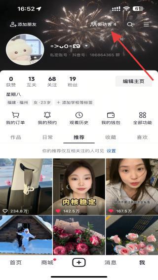 2、在個(gè)人主頁(yè)的右上角,用戶需點(diǎn)擊主頁(yè)訪客按鈕。