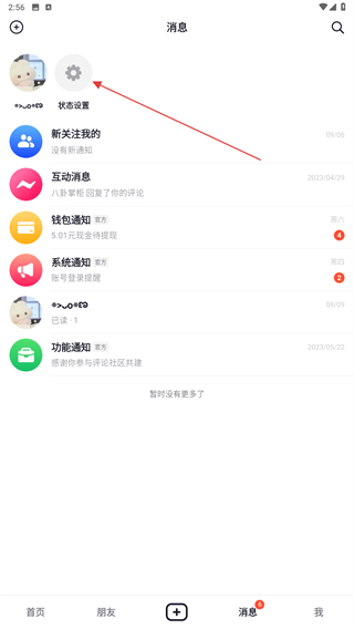 2、進(jìn)入消息的界面內(nèi),點(diǎn)擊上方狀態(tài)設(shè)置的按鈕。