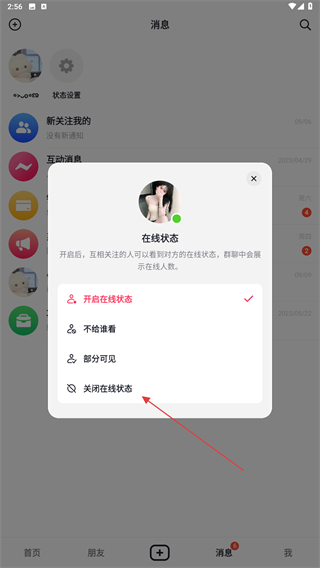 3、在彈出的在線狀態(tài)界面內(nèi),點(diǎn)擊關(guān)閉在線狀態(tài)即可。