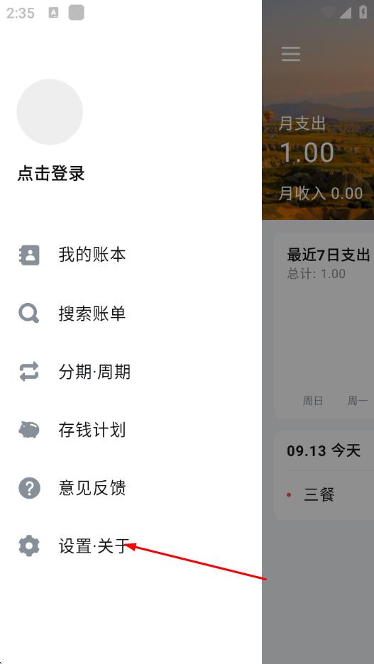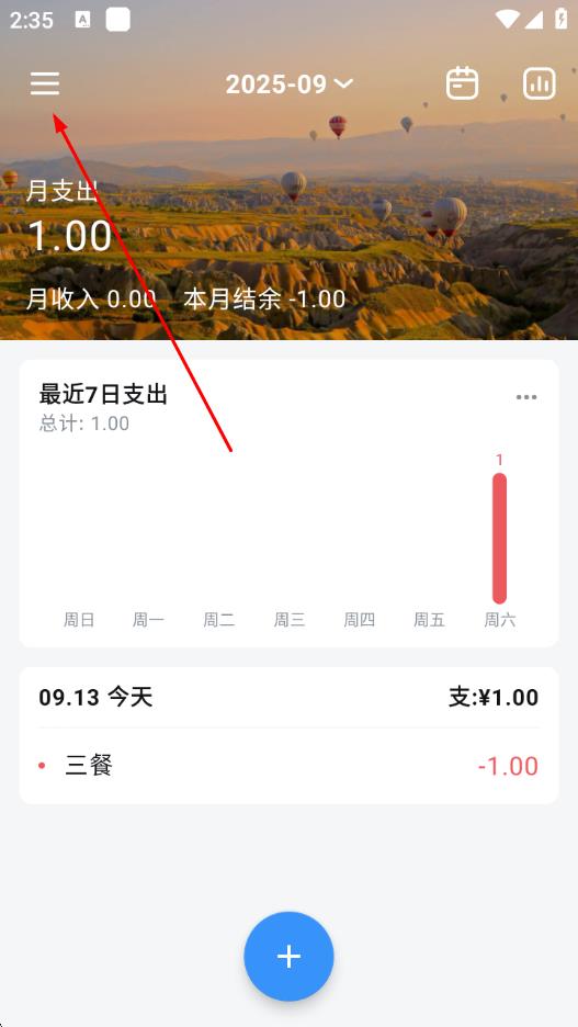 1、打開錢跡App,點(diǎn)擊左上角的三條橫線圖標(biāo),打開側(cè)邊菜單欄。