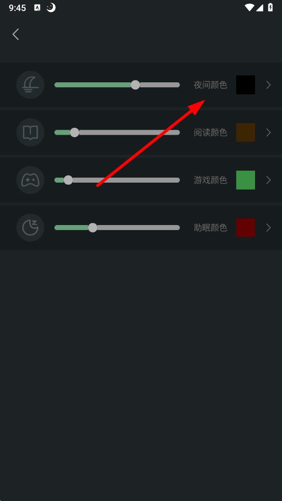 3、在模式顏色設(shè)置界面中,比如要修改夜間顏色,點(diǎn)擊夜間顏色選項(xiàng)。