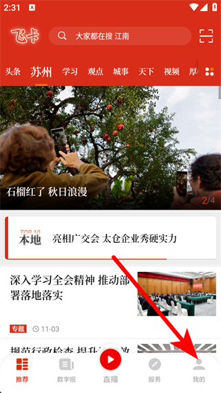 1、在蘇州日報引力播首頁,點擊右下角我的選項,進入登錄界面。
