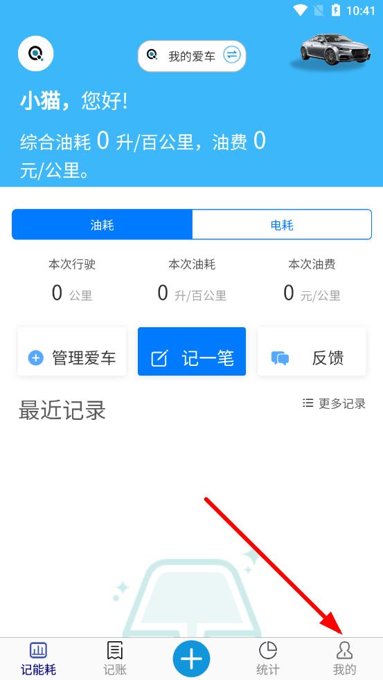 1、打開奇智油耗電耗app,點(diǎn)擊底部導(dǎo)航欄中的我的選項(xiàng),進(jìn)入個(gè)人設(shè)置界面。