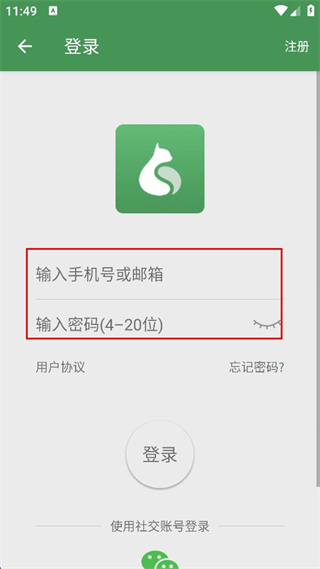 3、在登錄界面輸入手機號或郵箱以及密碼。