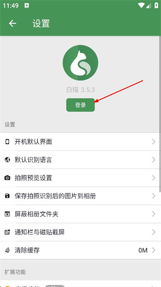 2、進入設(shè)置界面后點擊“登錄”按鈕。