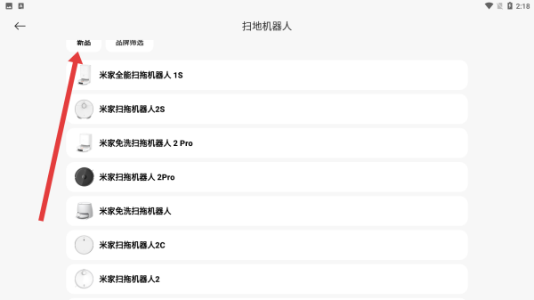 2、在掃地機器人型號頁面中,點擊新品按鈕查看最新的掃地機器人型號。