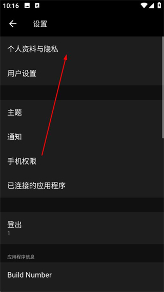 3、在設(shè)置頁(yè)面,點(diǎn)擊個(gè)人資料與隱私。