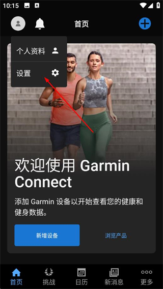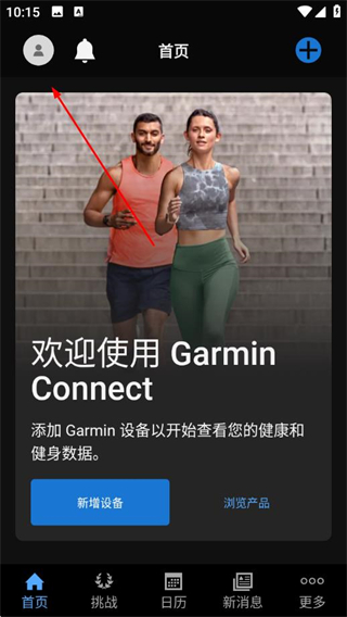 1、打開(kāi)Garmin Connect APP,點(diǎn)擊左上角個(gè)人頭像圖標(biāo)。