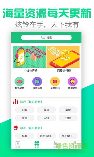 【天天有新鈴】緊貼潮流,收納時(shí)下火熱、流行的歌曲鈴聲,還有搞笑、影視、DJ、動(dòng)漫、短信鈴聲,樂趣無(wú)限!