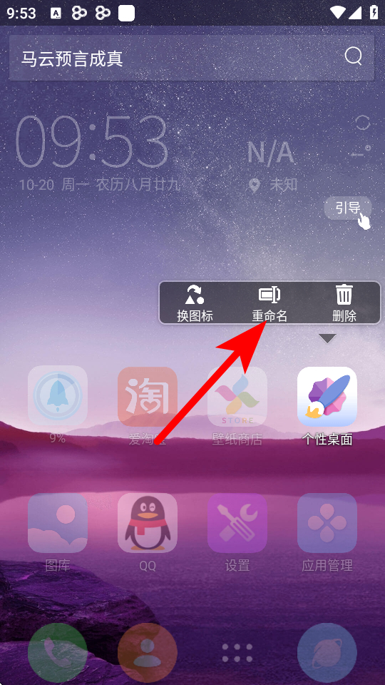 2、在操作菜單中,點(diǎn)擊重命名選項(xiàng),進(jìn)入應(yīng)用重命名界面。