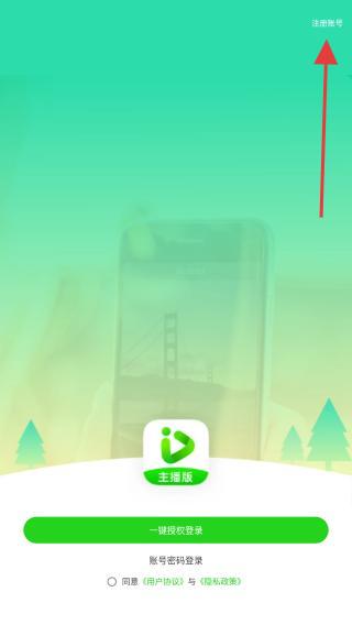 1、啟動(dòng)愛奇藝直播機(jī)APP,在右上角點(diǎn)擊注冊(cè)賬號(hào)的按鈕。