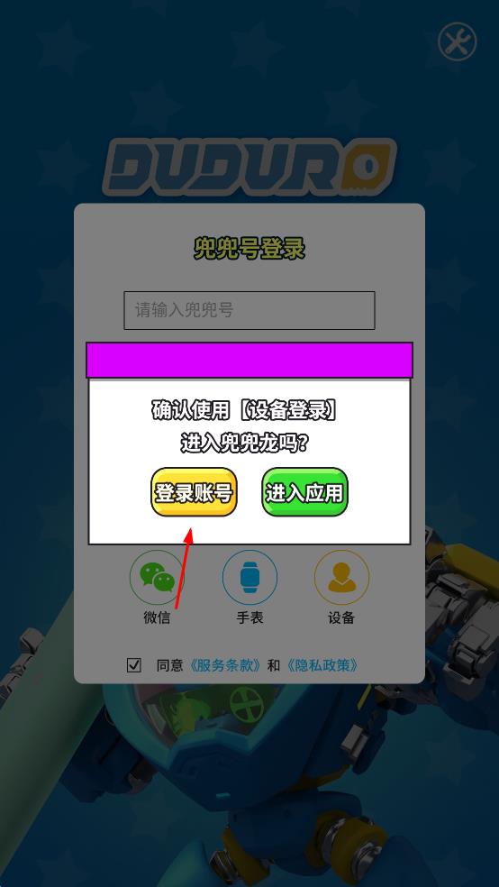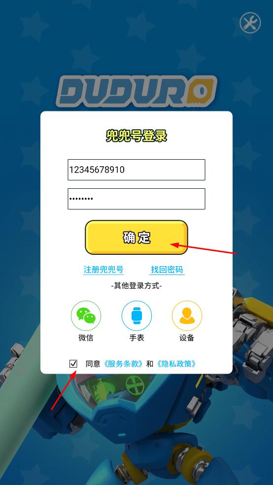 4、勾選同意服務(wù)條款和隱私政策,點(diǎn)擊確定按鈕,完成兜兜龍同步學(xué)APP的登錄。