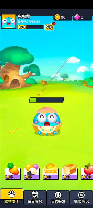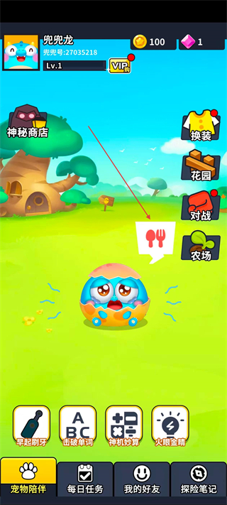 1、打開(kāi)兜兜龍同步學(xué),不停點(diǎn)擊蛋,孵化出兜兜龍角色。