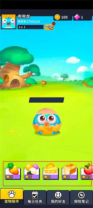 2、兜兜龍饑餓,點(diǎn)擊下方食物選項(xiàng),彈出食物選擇菜單。