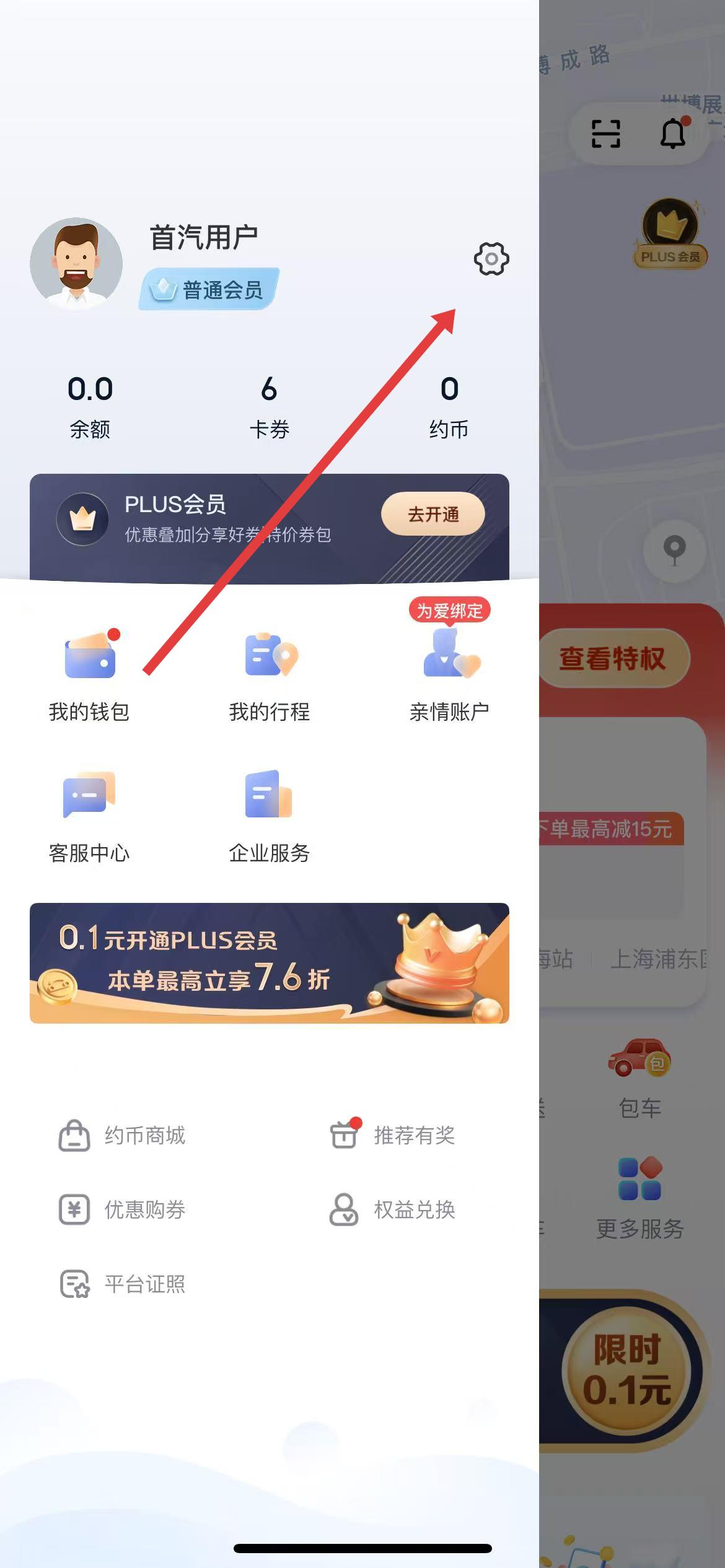 1、打開首汽約車應(yīng)用,點(diǎn)擊左上角的頭像圖標(biāo),進(jìn)入個(gè)人中心界面。