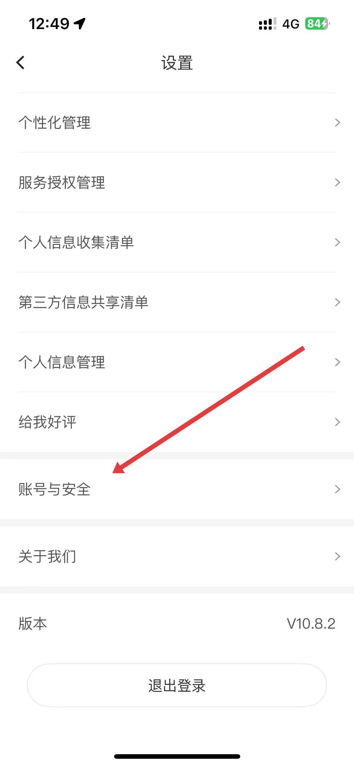 3、在設(shè)置頁(yè)面里,找到并點(diǎn)擊賬號(hào)與安全的選項(xiàng),進(jìn)入賬號(hào)安全管理界面。