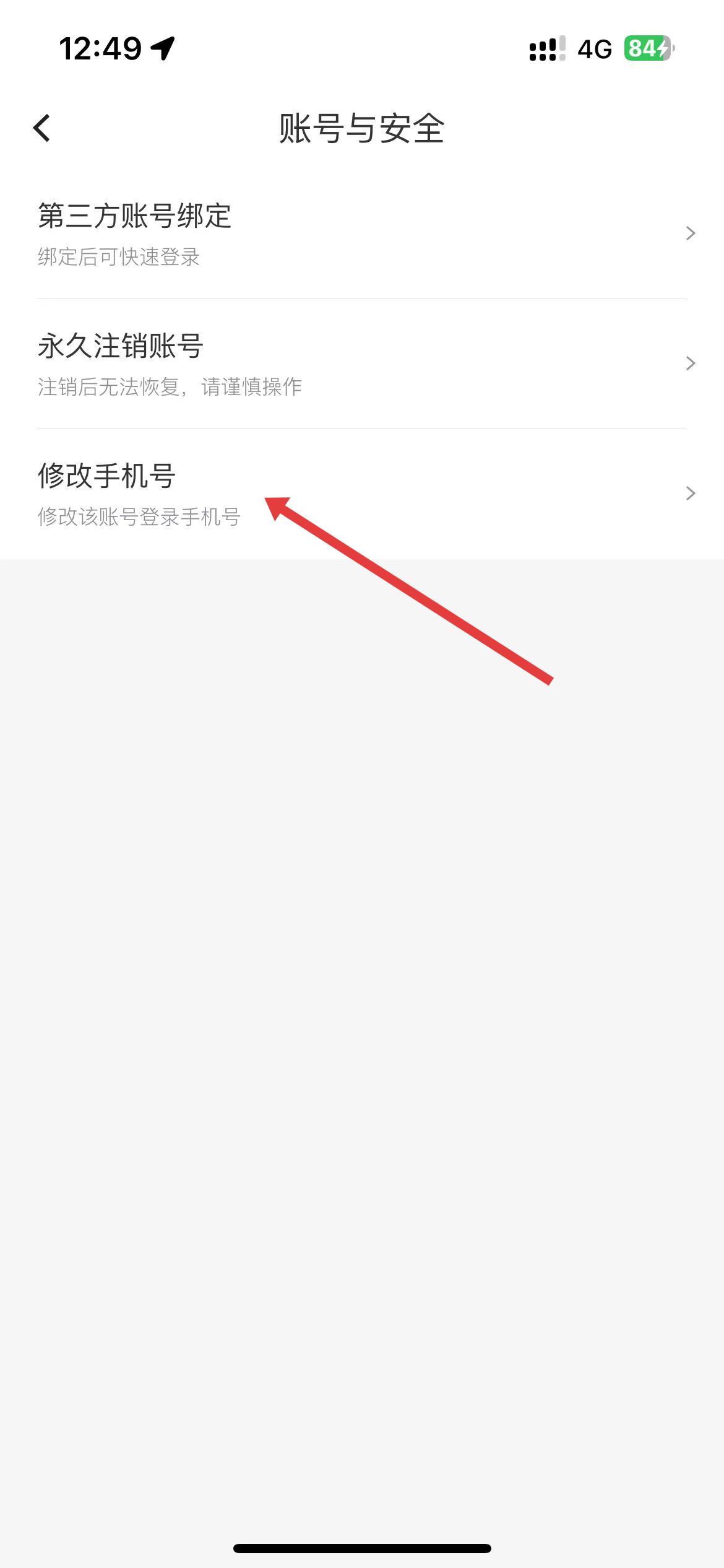 4、在賬號(hào)與安全界面中,點(diǎn)擊修改手機(jī)號(hào)選項(xiàng),按照后續(xù)提示完成身份驗(yàn)證等操作,即可成功修改手機(jī)號(hào)。