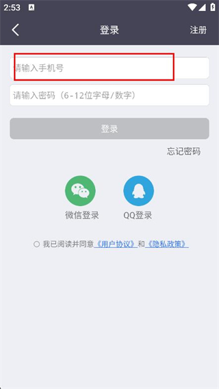 3、進入登錄頁面后,點擊輸入框,輸入手機號。