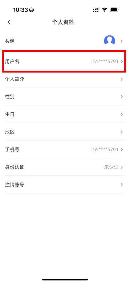 3、在個(gè)人資料頁面中,點(diǎn)擊用戶名選項(xiàng)。