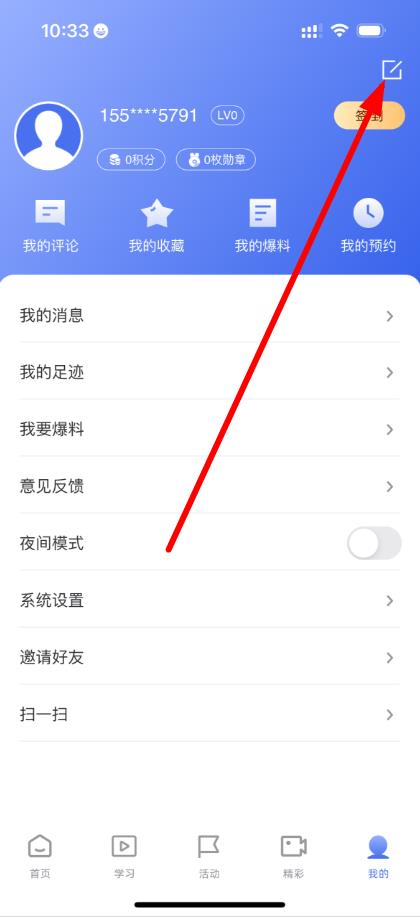 2、在個(gè)人界面右上角找到并點(diǎn)擊編輯圖標(biāo),進(jìn)入個(gè)人資料頁面。