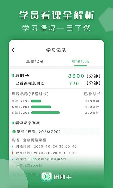 2、強大高效的平臺教師教學教務(wù)管理系統(tǒng),通過研助手app用戶可以隨時了解學員情況;