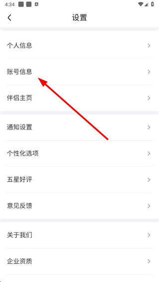 2、在設(shè)置界面,點(diǎn)擊賬號(hào)信息選項(xiàng),進(jìn)入賬號(hào)信息頁(yè)面。