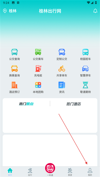 1、打開(kāi)桂林出行網(wǎng)APP,點(diǎn)擊我的選項(xiàng),進(jìn)入個(gè)人頁(yè)面。