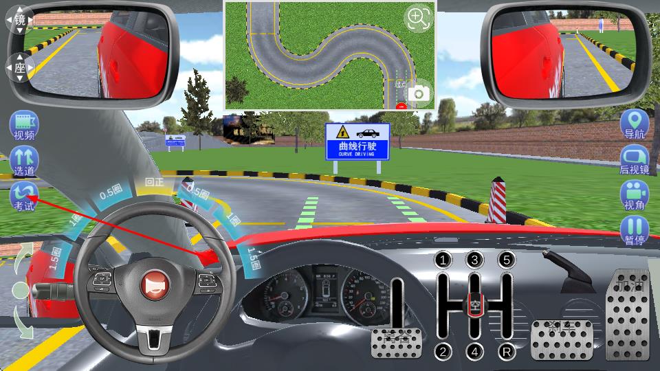 3、進(jìn)入模擬練車界面后,點(diǎn)擊界面中的考試選項(xiàng)。