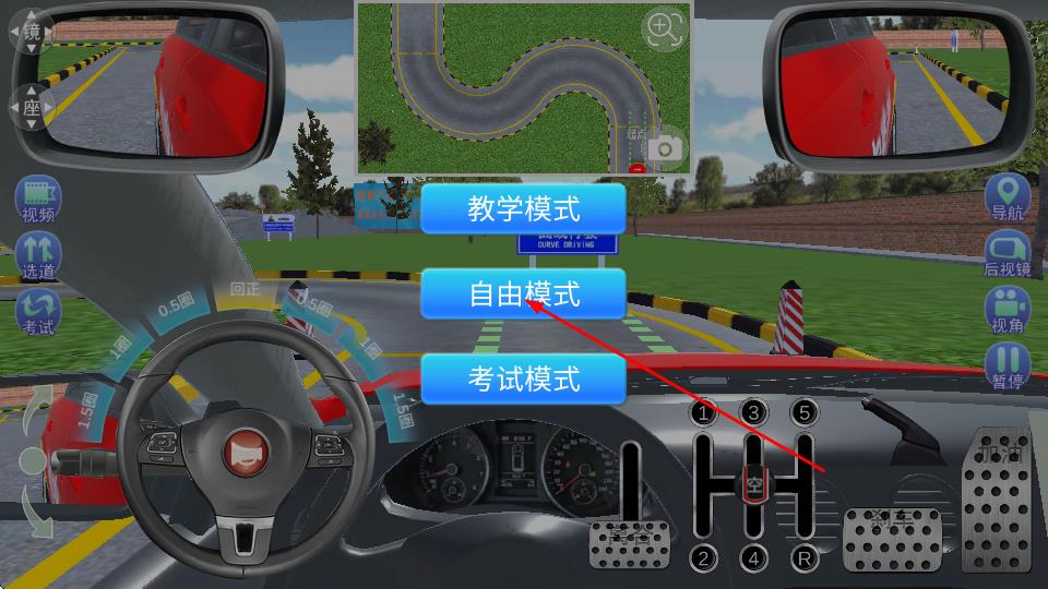 4、在彈出的模式選擇中,點(diǎn)擊自由模式,即可開始自由駕駛練習(xí)。