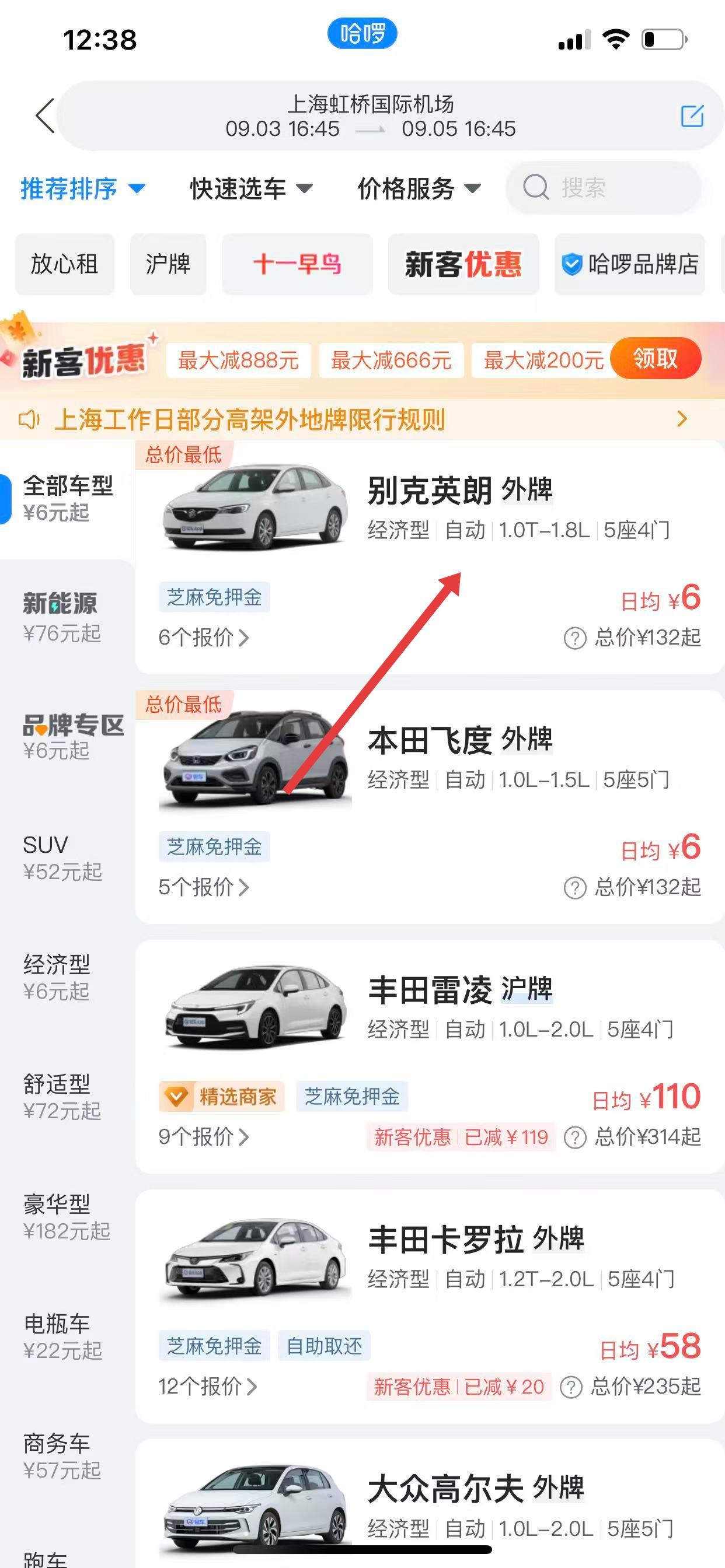 3、進入選車頁面,選擇符合需求的車輛。