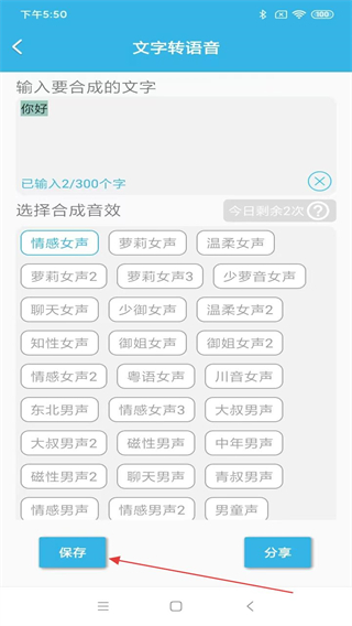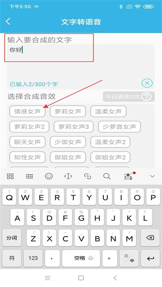 3、在該頁面內,輸入要合成的文字內容,并選擇合成音效。