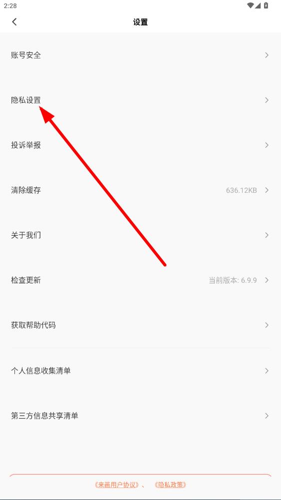 3、在設(shè)置頁面里,找到并點(diǎn)擊隱私設(shè)置選項(xiàng)。